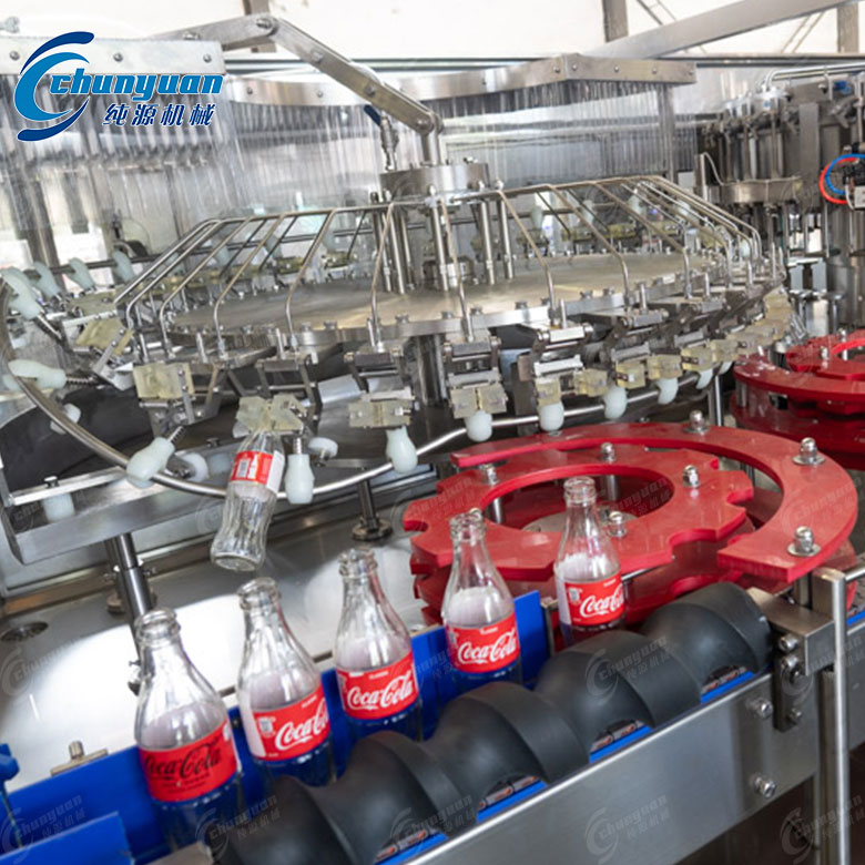 玻璃瓶可樂汽水灌裝線是一種專門用于灌裝生產玻璃瓶裝含有二氧化碳氣體的飲料(如可樂汽水)的自動化流水生產線。可樂汽水灌裝線主要適用于灌裝含有二氧化碳氣體的飲料,這些飲料的主要成分通常包括純凈水、白砂糖和二氧化碳氣體。可樂灌裝線可以處理不同容量的瓶子,如350ml、500ml、1L、1.5L等,根據用戶要求設計相應的瓶型及容量。