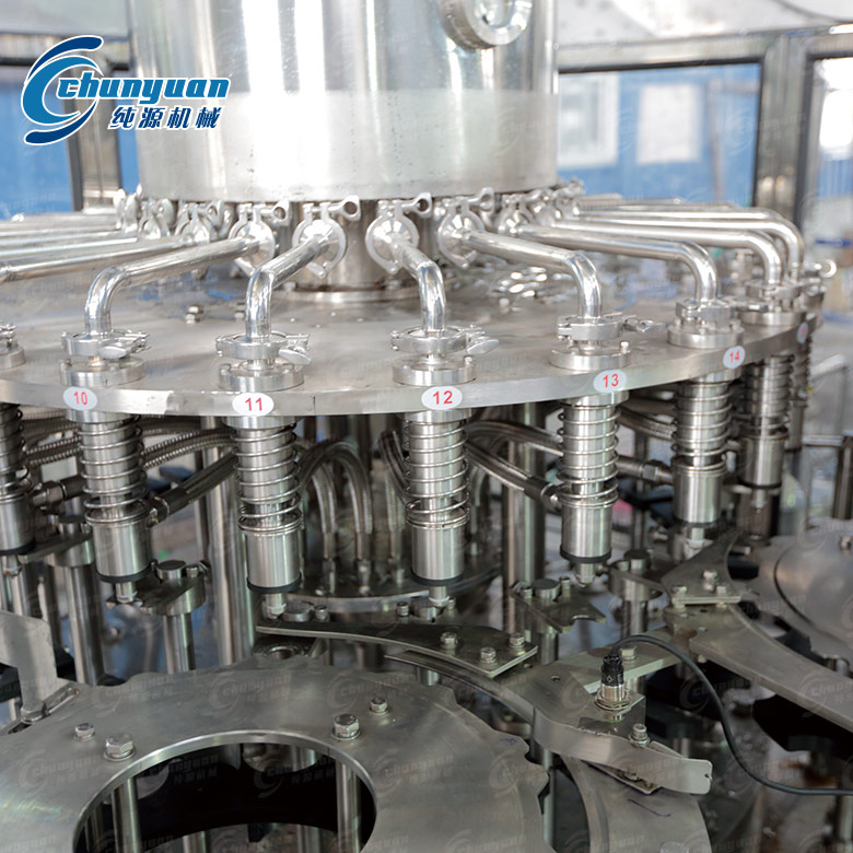 純源機械廠家供應的全自動冰紅茶飲料灌裝機械采用卡瓶頸傳動技術,實現全自動沖瓶、灌裝、旋蓋等工序,自動化程度高;配有完善的溫度控制系統和回流系統,設有完善的自動清洗系統及控制程序,整個飲料機械與液體接觸的零件全部使用優質不銹鋼材料及食品級橡膠。