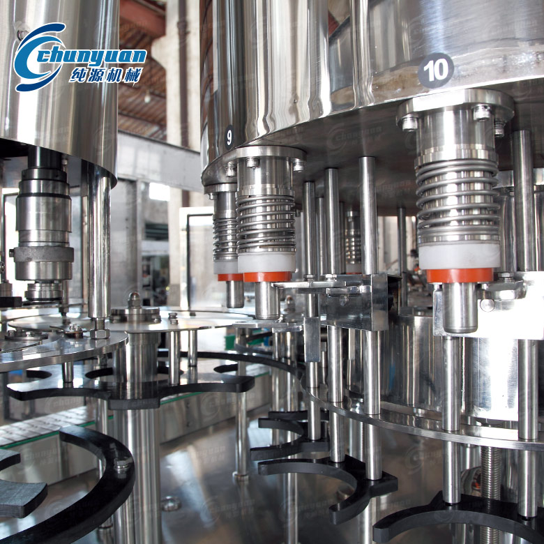 純源機械廠家專業提供5L大瓶純凈水灌裝機視頻。4.5L-9L大瓶水灌裝生產線組成有:全自動吹瓶機,理瓶機,灌裝機,套標機,全自動裝箱機,跌落式碼垛機,全自動碼垛機等飲料包裝設備。大瓶純凈水設備在一機上實現沖瓶、灌裝、封蓋。3-5L純凈水設備設計科學合理,外形美觀,功能齊全,操作維修方便,自動化程度高。