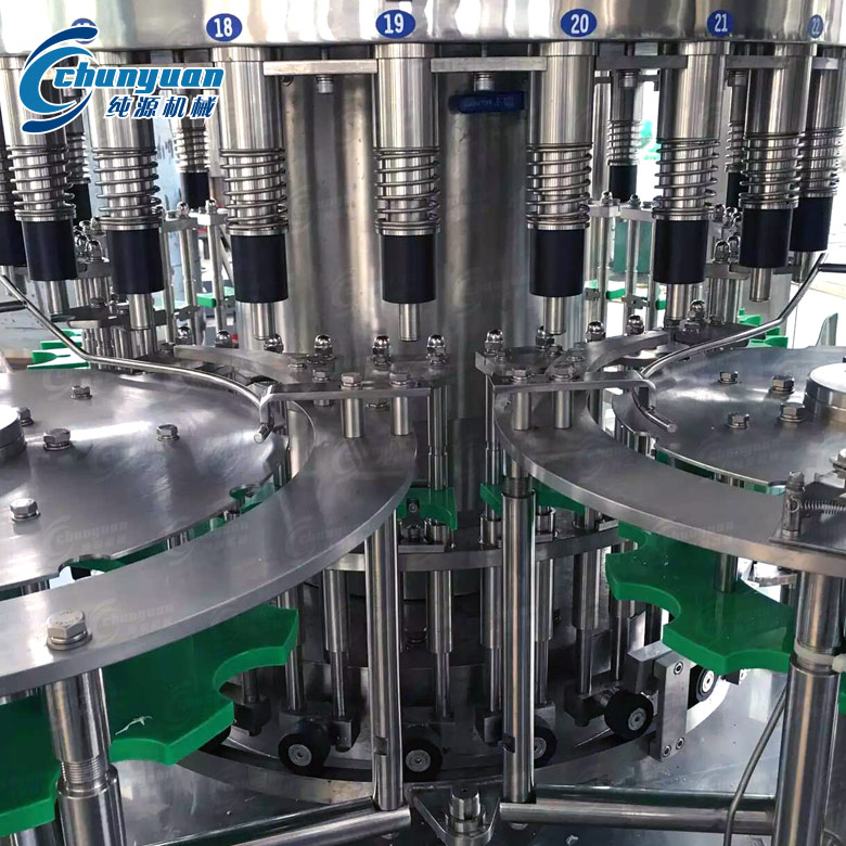 純源機械廠家專業(yè)提供3-5L大瓶純凈水灌裝設(shè)備視頻。大瓶純凈水灌裝設(shè)備在一機上實現(xiàn)沖瓶、灌裝、封蓋。3-5L大瓶純凈水灌裝設(shè)備設(shè)計科學合理,外形美觀,功能齊全,操作維修方便,自動化程度高。