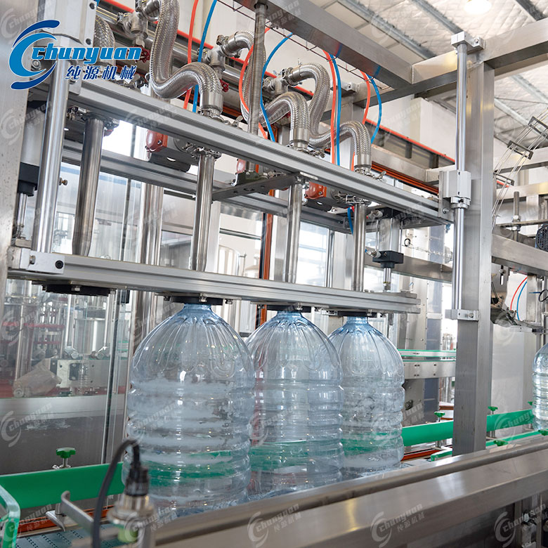 ?大瓶水灌裝設(shè)備?:大瓶水灌裝機(jī)是生產(chǎn)線的核心部分,用于將處理后的水灌裝到大瓶中。這些設(shè)備通常具有高精度和高效能,能夠確保每個(gè)瓶子中的水量一致,且灌裝過(guò)程中不會(huì)造成水的二次污染。此外,灌裝設(shè)備還可以根據(jù)客戶的需求進(jìn)行定制,以適應(yīng)不同規(guī)格和形狀的大瓶?。