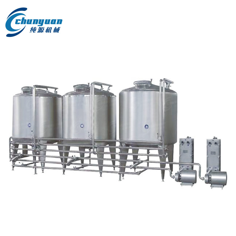 純源機械廠家供應的全自動CIP就地清洗系統用于乳品、果汁、飲料等行業物料管道和容器設備的就地清洗。CIP利用離心泵輸送清潔液在物料管道和設備容器內進行強制循環,達到清洗目的而不需要對管道設備容器內進行強制循環,達到清洗目的而不需要對管道設備解體,提高設備利用率,減少勞動強度。