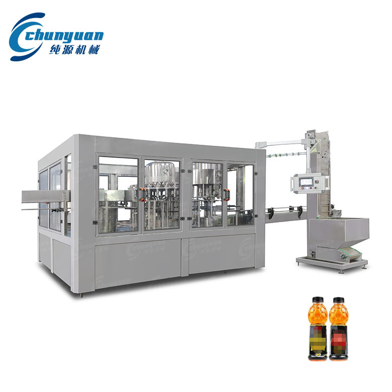 能量飲料機械集洗瓶、灌裝、封蓋于一體,適用于各種能量飲料、運動飲料、果汁飲料、茶飲料等的熱灌裝生產,然同時更換少量的部分零部件,便可用于純凈水、礦泉水、飲用水等的灌裝。純源機械廠家生產供應的能量飲料機械的產量為4000-24000瓶/小時。能量飲料設備采用先進的微負壓重力式灌裝原理,灌裝快、穩、準,設有完善的物料回流系統,也可實現回流時獨立回氣,不與物料接觸,減少物料二次污染及氧化。