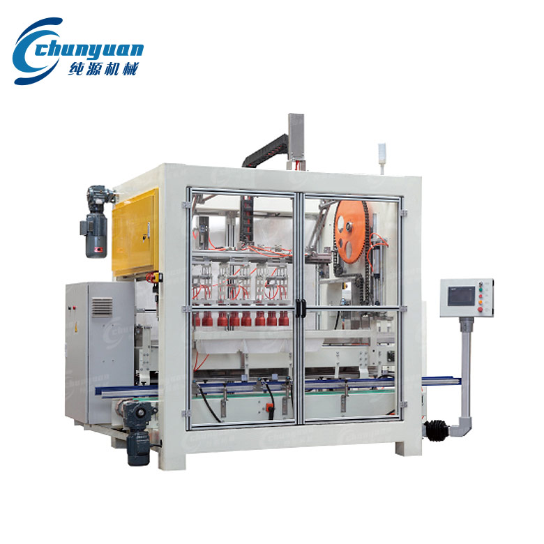 在全自動包裝流水線中,裝箱機是整個系統運行的核心。CY-CL裝箱機用于完成運輸包裝,它是將包裝成品按一定排列裝入紙箱的一種機械。純源機械生產的裝箱機為擺復式全自動裝箱機。